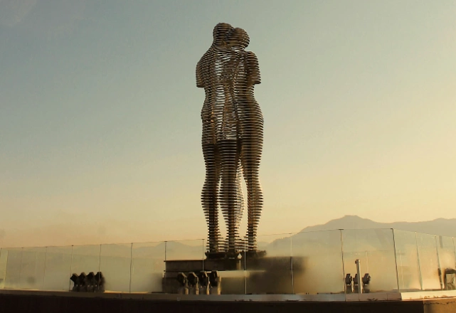 On Batumi’s vibrant seaside boulevard, one of the most captivating sights is not just the Black Sea horizon but the breathtaking kinetic sculpture of Ali and Nino. Towering at 8 meters tall, these two steel figures, designed by Georgian artist Tamar Kvesitadze, tell a powerful story of love, separation, and eternal return.